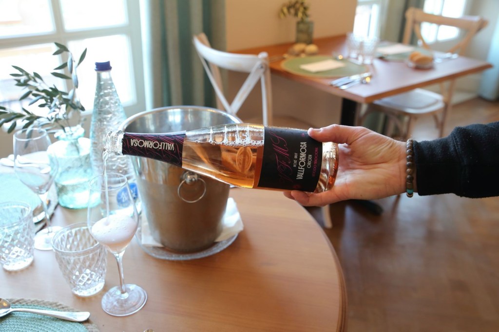 El menjar el vam marinar amb un cava Vallformosa , origen brut Rosé