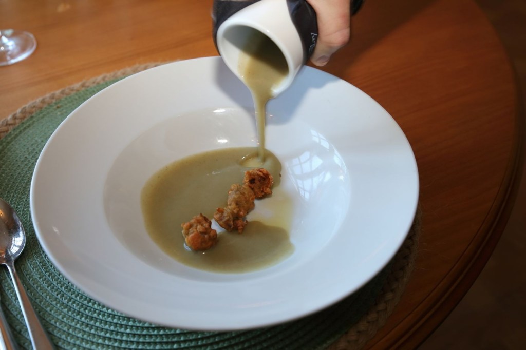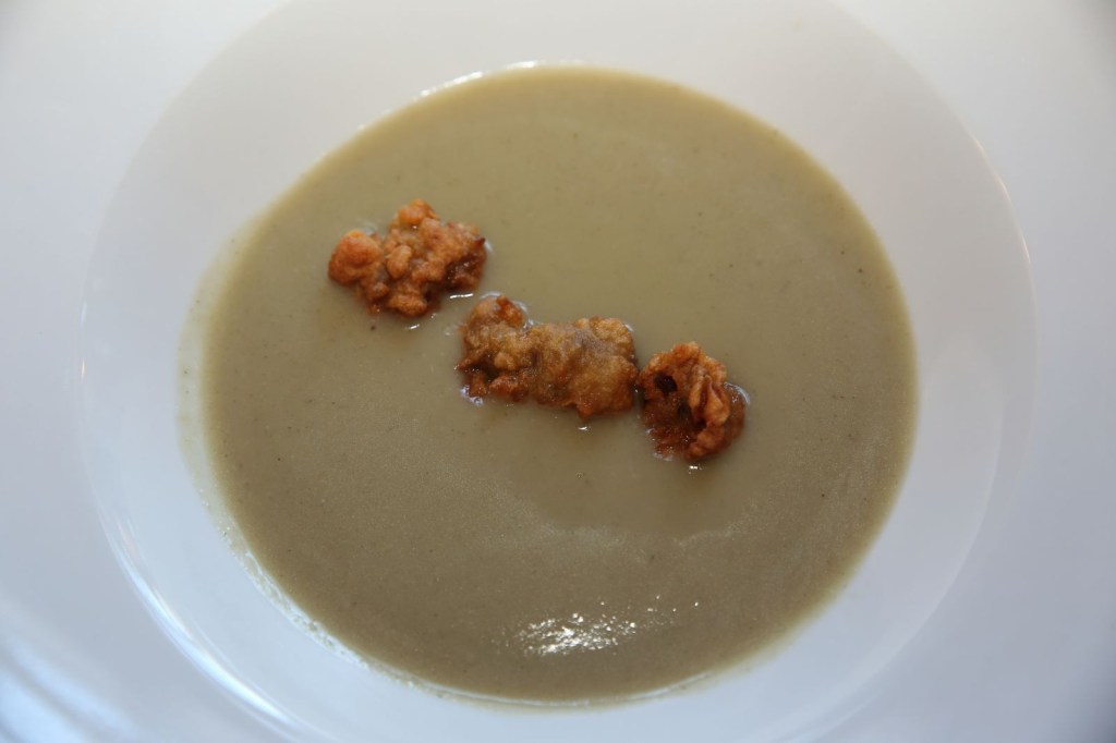 El menú va ser sorprenent, vam començar amb una crema de carxofes la brasa amb bunyols de pernil ibèric