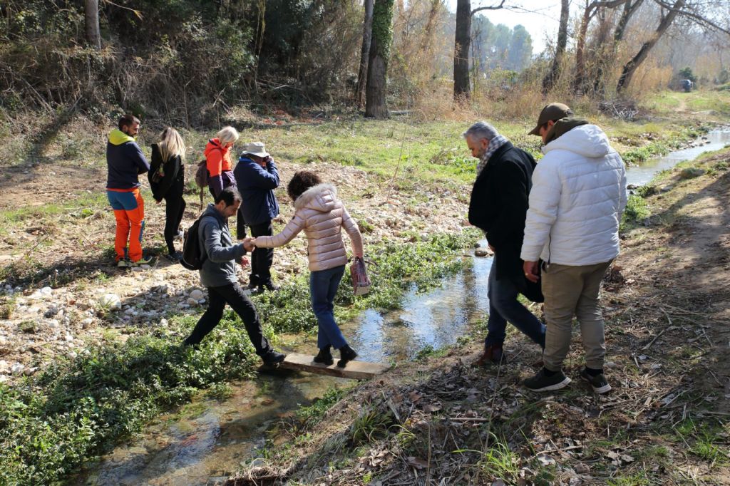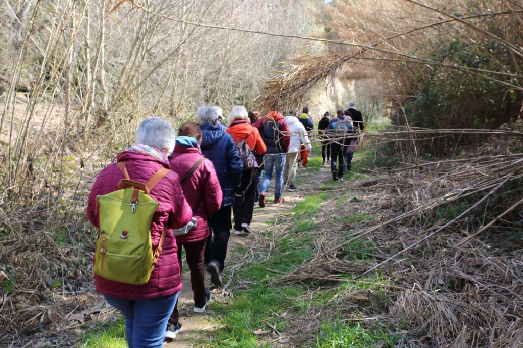 A partir d’aquí ja vam començar la caminada pel camí que envolta el riu Riu bitlles i on encara es mig conserven 14 molins de paper, dels el Joan ens va anar instruint dels mateixos al llarg de l’excursió, en aquests 3,5 Km de passeig, amb un magnífic dia assolellat