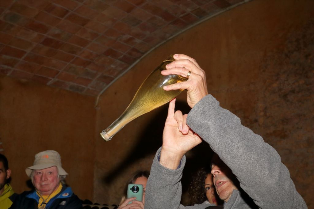 Al celler va seguir il·lustrant-nos amb l’elaboració, tiratge i conservació dels seus vins i caves, observem, tal com ens ho va explicant el joan, el respecte cap als seus orígens, cap a la vinya, cap al procés d’elaboració i la mínima intervenció en aquest procés i que és la autenticitat que busquen, és tot gairebé artesal, el degollament ho fan manual i vam tenir el privilegi de poder-ho comprovar amb la demostració que ens va fer el Joan, espectacular.