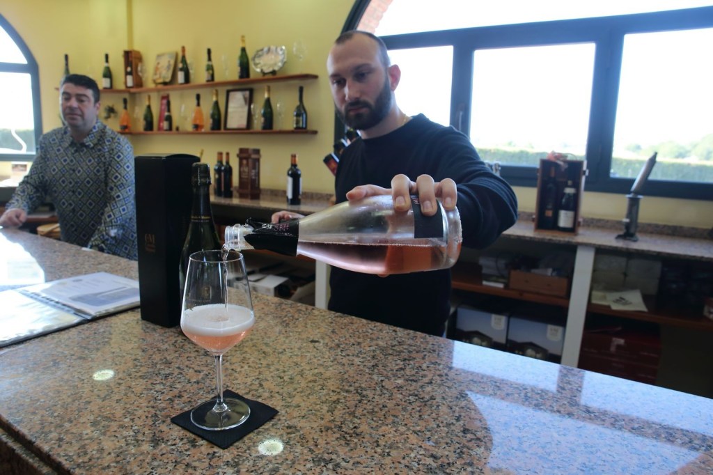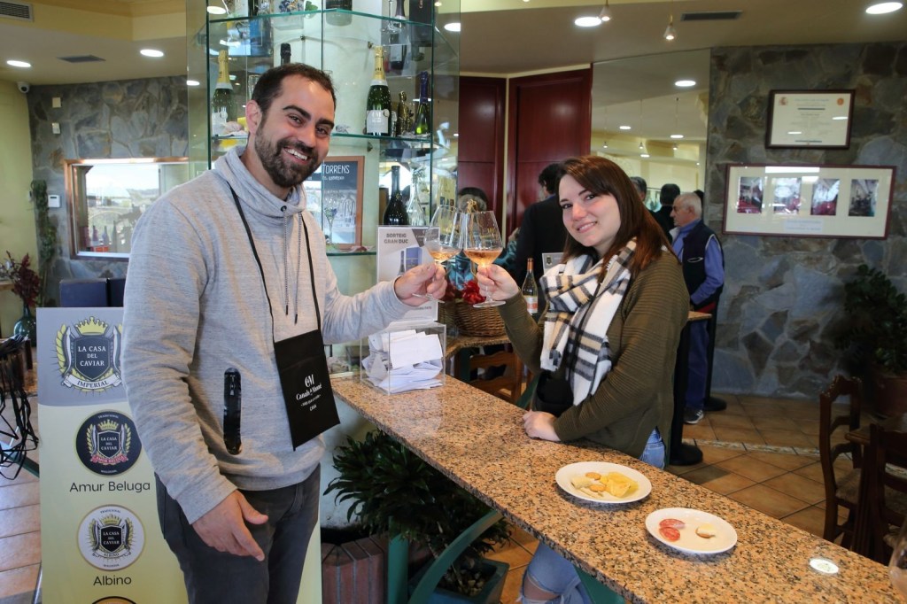 D’aquí ja vam pujar al Wine bar i botiga, on vam començar la visita i on ens tenien preparat un aperitiu per marinar amb el tercer i últim tast un magnífic Cava Lola Rose Pinot Noir – Brut