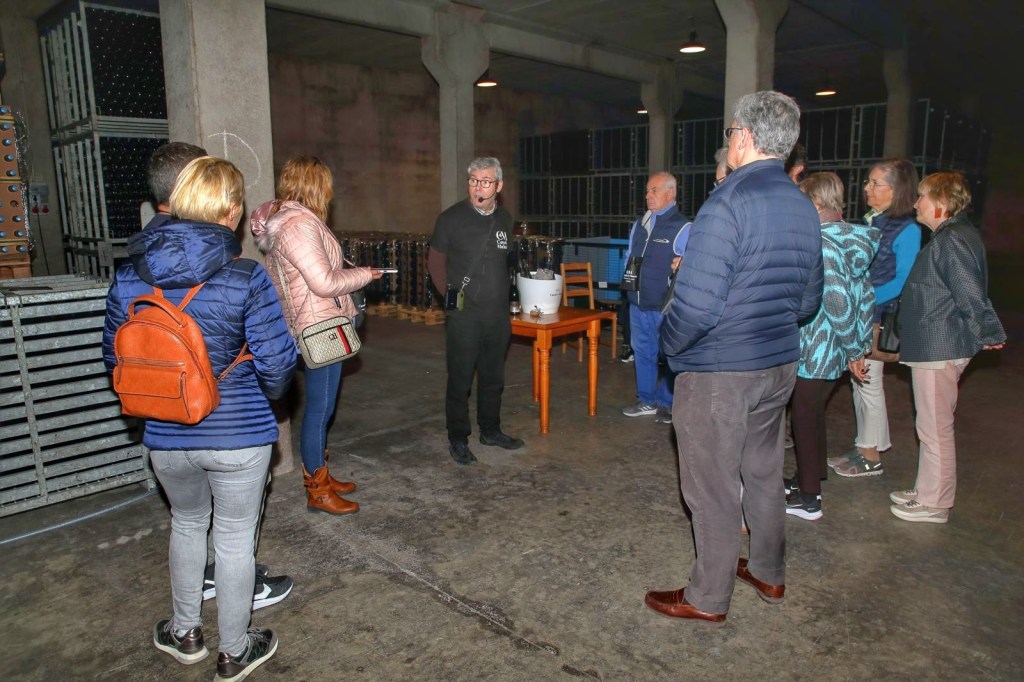 Comencem la visita donant-nos la benvinguda amb una saborosa copa de cava i un pica pica, amb un porta copes que portaríem penjat a tot el recorregut, ja que, vam anar fent tasts durant el mateix. Ens va fer de guia el Carles Parés, una agradable persona i bon guia ja que ens va fer un ensenyament i aclariments durant els 45 minuts que va durar la visita, que, a més atenent generosament a cadascuna de les persones que li anaven fent diferents preguntes, un gran expert.