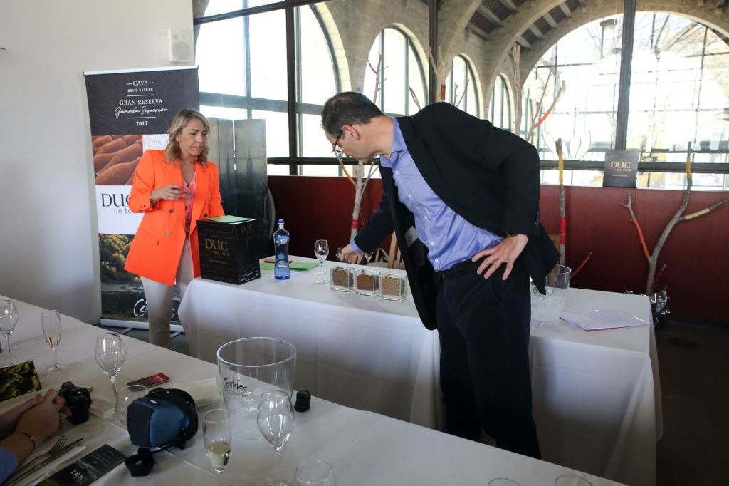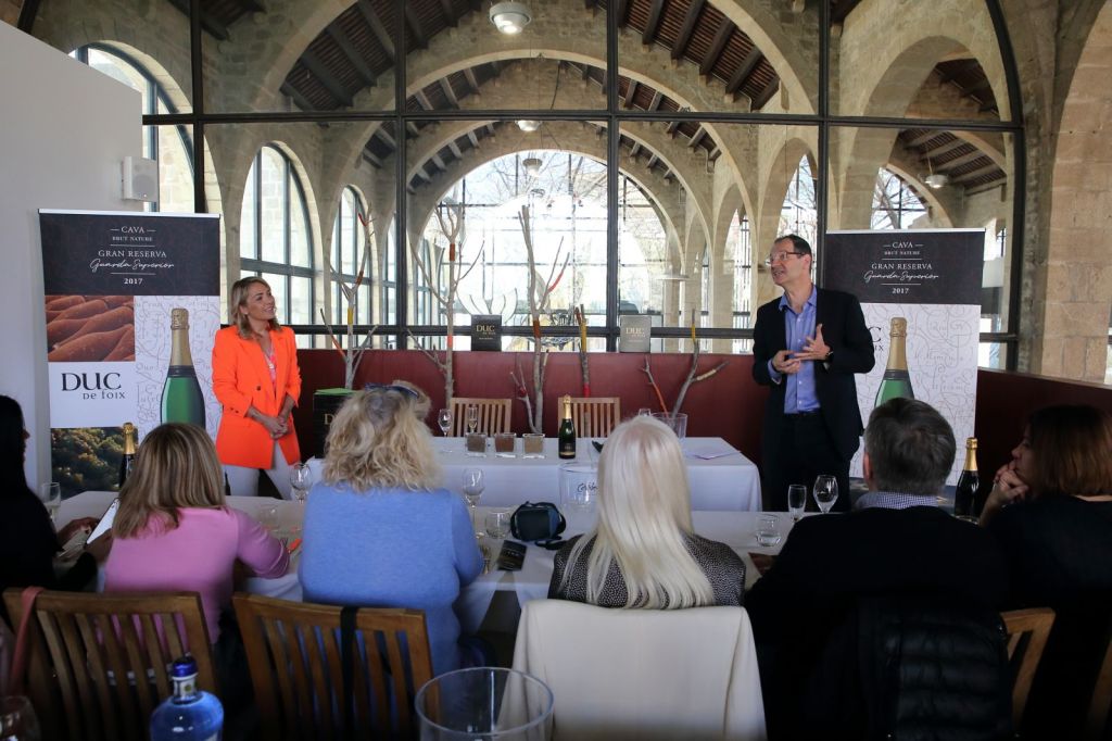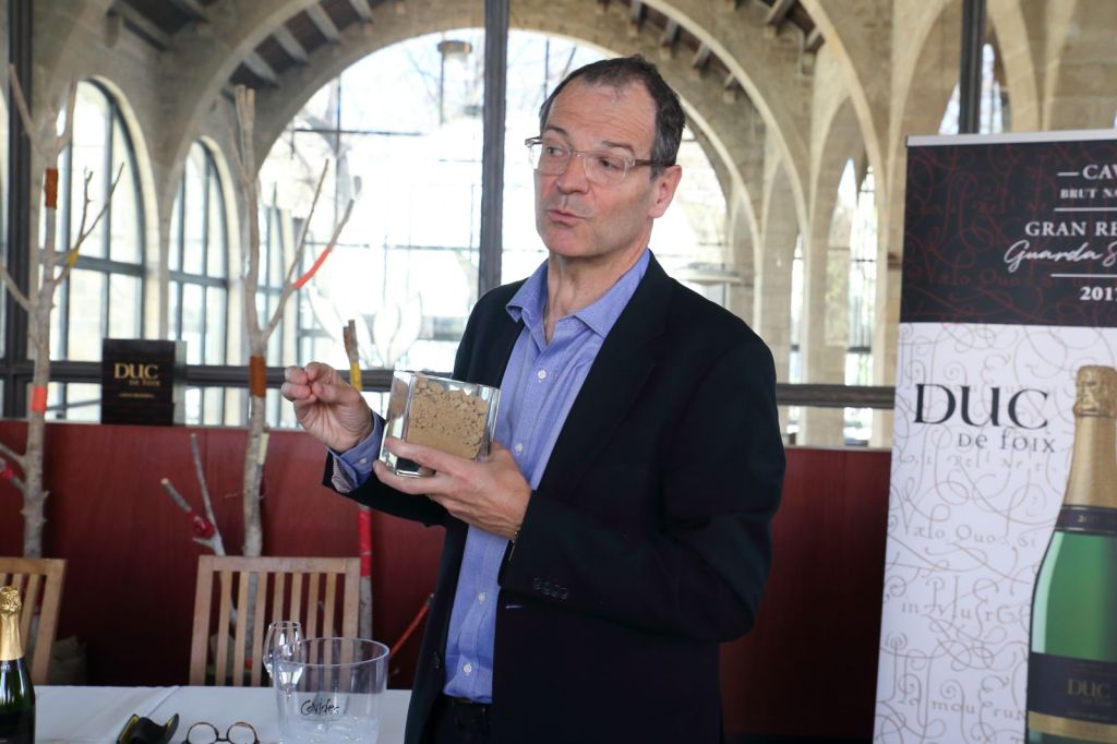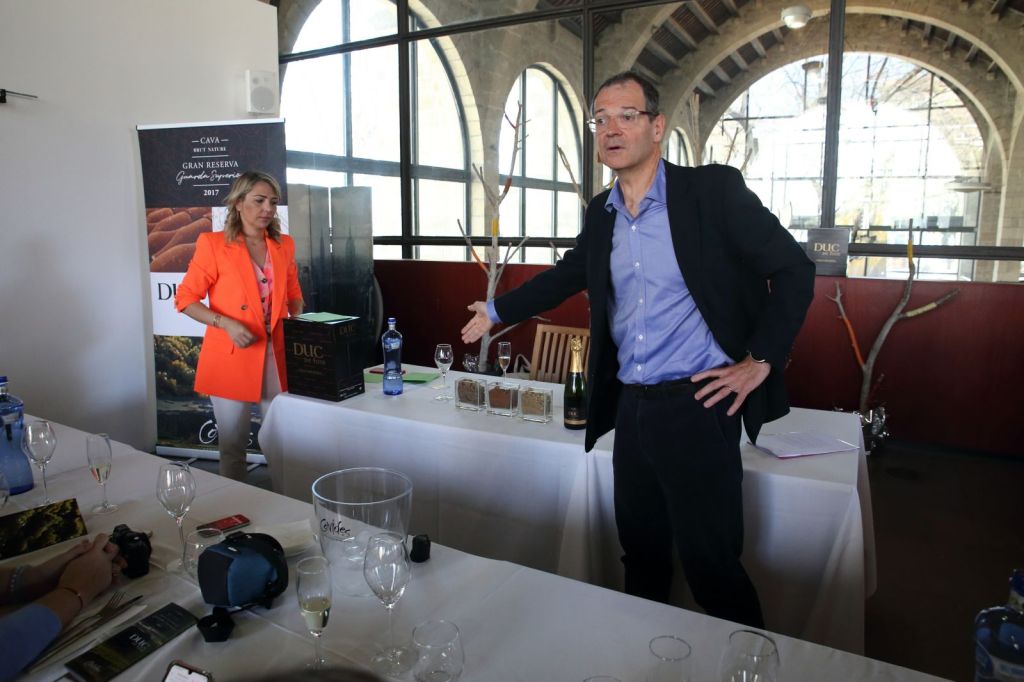 El Director Comercial de Covides, Christophe Marquet, i la Comunicadora de Meritxell Falgueras, Ens van explicar d’on neix aquest gran cava posant èmfasi en els tipus de terres on ha estat plantades les vinyes on Duc de Foix Brut Nature Gran Reserva de Covides ha estat tractat per a la seva posterior elaboració