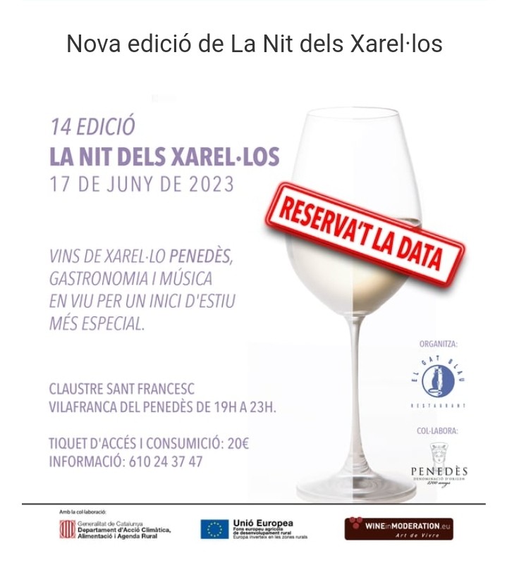 El restaurant El Gat Blau, juntament amb el patrocini de la DO Penedès, ha presentat la 14a edició de La Nit dels Xarel·los. L’acte que tindrà lloc el proper 17 de juny al Claustre de Sant Francesc de Vilafranca del Penedès, comptarà amb la participació de 21 cellers de la DO Penedès. Durant l’acte, els assistents podran gaudir de més d’una quarantena de referències amb la varietat Xarel·lo com a protagonista. Els vins s’acompanyaran de les propostes gastronòmiques de El Gat Blau i de la música en directe d’Apocadixie.