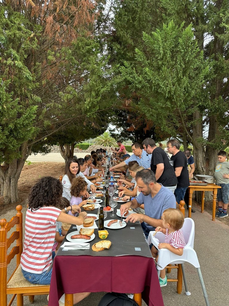 Acto seguido tuvo lugar un atractivo y divertido desayuno de Pagés entre viñas, una experiencia culinaria inolvidable, de morcilla a la brasa, con judías, escalivada, pan tostado, all i oli, patata al caliu y también con tomate escalivado todo ello regado con uno de los mejores cavas de la bodega, el Gran Reserva ADN Canals.