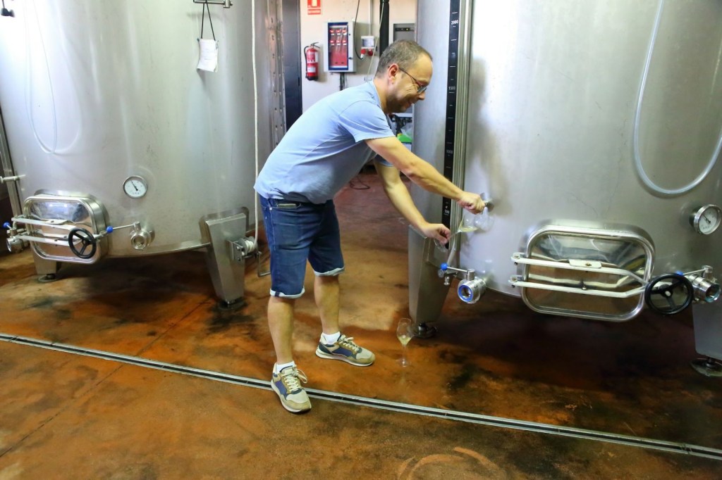 Mentre el Xavier ens anava explicant la història del celler, vam arribar als dipòsits d’acer on es fan les vinificacions i vam i vam tenir el plaer de poder fer diversos tasts directes dels mateixos, vins bases per a cava, sense fermentar i fermentats, sense fermentar vam provar un most de parellada d’aquella mateixa setmana, boníssim, un Chardonnay ja fermentat i un xarel·lo que no serà per a vi base, per a vi tranquil. Una experiència sorprenent. Seguim recorrente el celler i al final acabem realitzant un tast fantàstic.