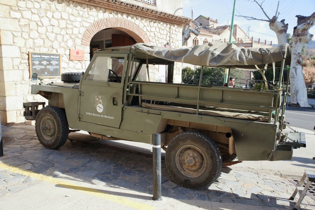 Comencem la visita amb el Rafa, que va ser el nostre guia per les vinyes, un guia fantàstic, divertit i amè, fent que la visita per les vinyes fos molt grata, però,l’espectacular és que el Rafa ens estava esperant, davant del celler, amb un Land Rover Santana 4×4 de l’any 1975, al que en diuen “la Deisy”, on vam fer el recorregut per les vinyes i el Rafa ens anava explicant la varietat plantada i el terreny per on anàvem passant, fins arribar a les vinyes velles que tenen als peus del Montsant!. Aquí vam fer una parada on regnava el silenci i la pau, l’entorn era tranquil i des d’on lluny es veia el poble de Siurana.