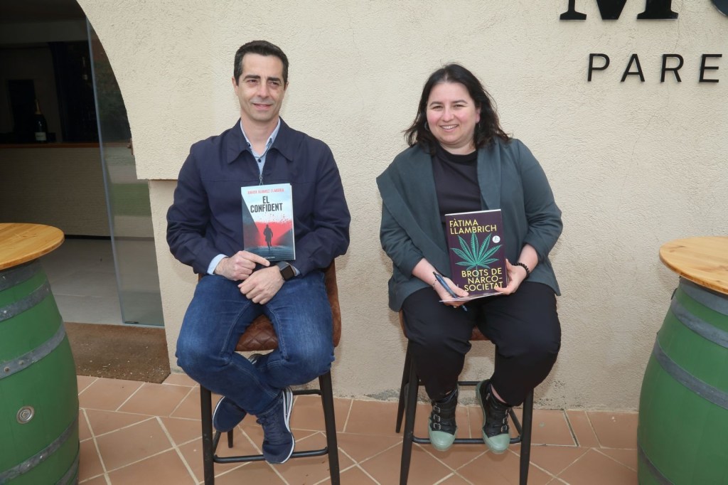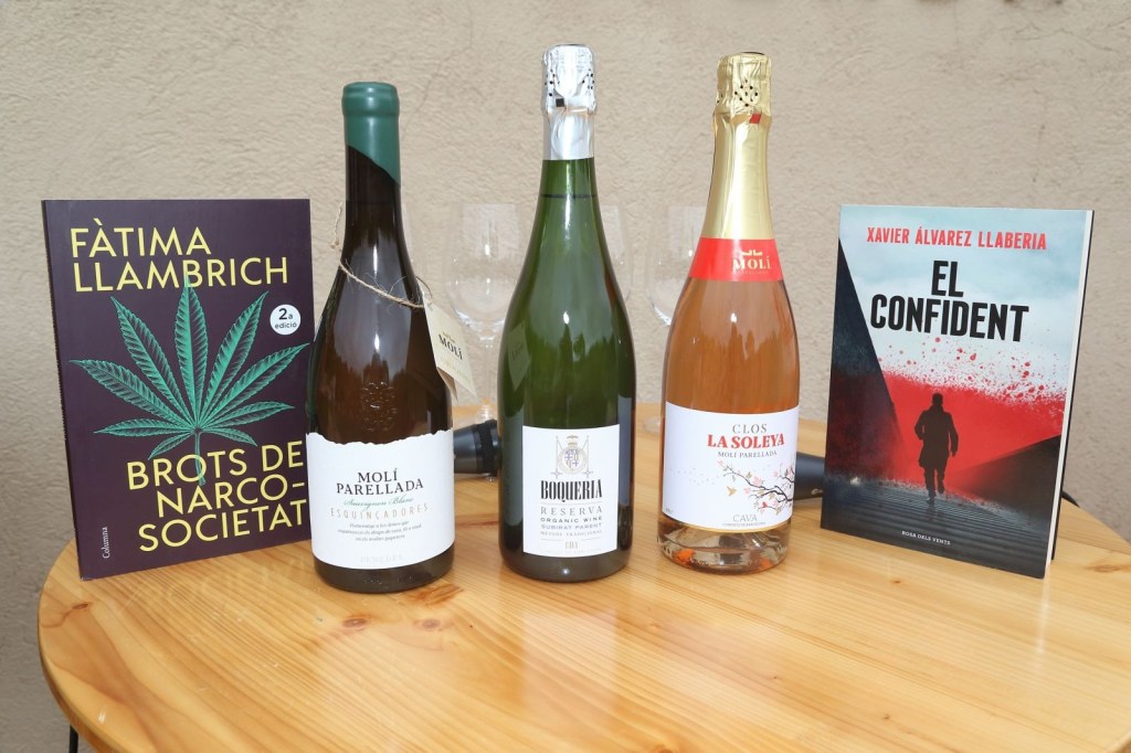 Després de la visita, ja passem al maridatge literari, presentat per la Mònica Socias, comunicadora cultural, juntament amb la Julia com a sommelier, i els dos autors Fàtima Llambrich i el seu llibre “BROTS DE NARCO-SOCIETAT i el Xavier Álvarez i el seu llibre “ EL CONFIDENT”.