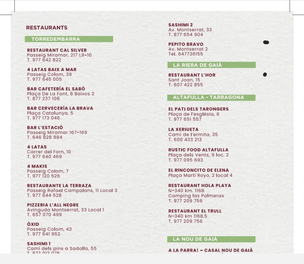 Els dissabtes i diumenges al migdia, 21 establiments de Torredembarra, Altafulla, La Riera de Gaià i La Nou de Gaià serviran degustacions a un preu de 6€ que variaran cada setmana i que estaran acompanyades del vermut Duc de Foix de la Cooperativa Covides.