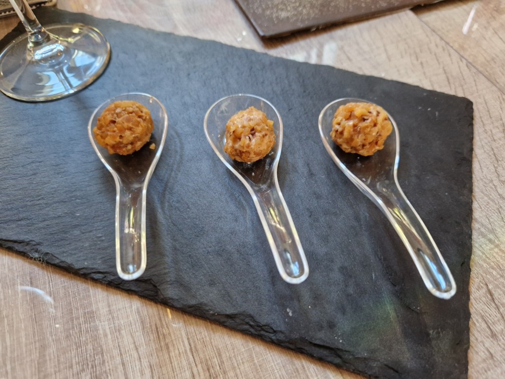 Que ens va il·lustrar dels temes que escoltaríem i veuríem en una pantalla durant el maridatge i la Gemma Torelló que ens va comentar el perquè de marinar els productes i excel·lents caves que provaríem amb cadascuna de les òperes que escoltaríem i veuríem en una pantalla que hi havia posada i que va ser com us indicarem :