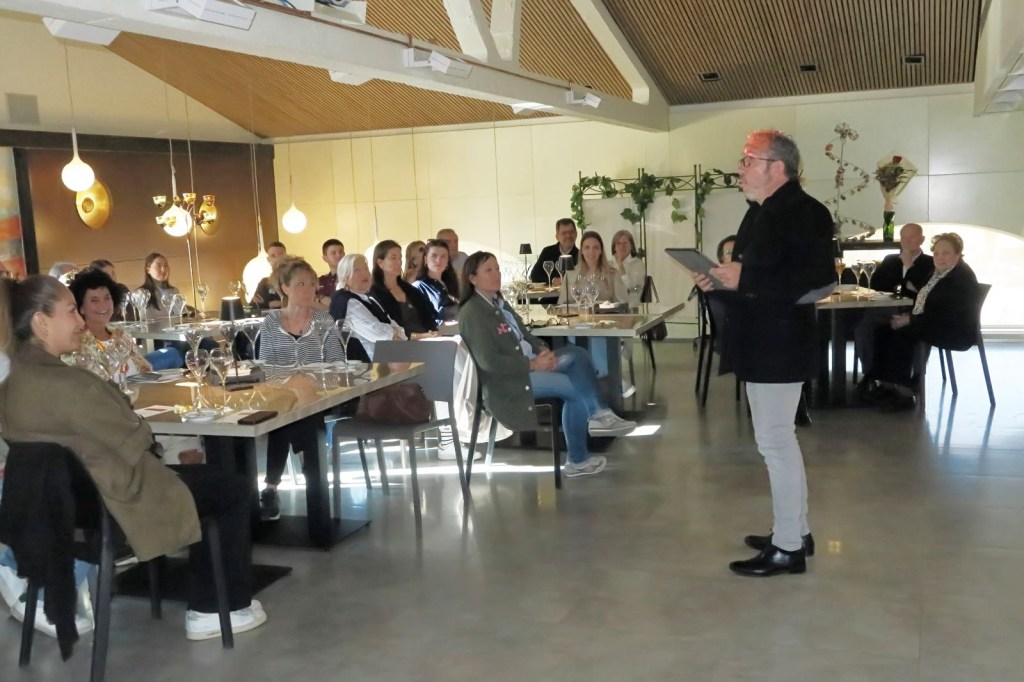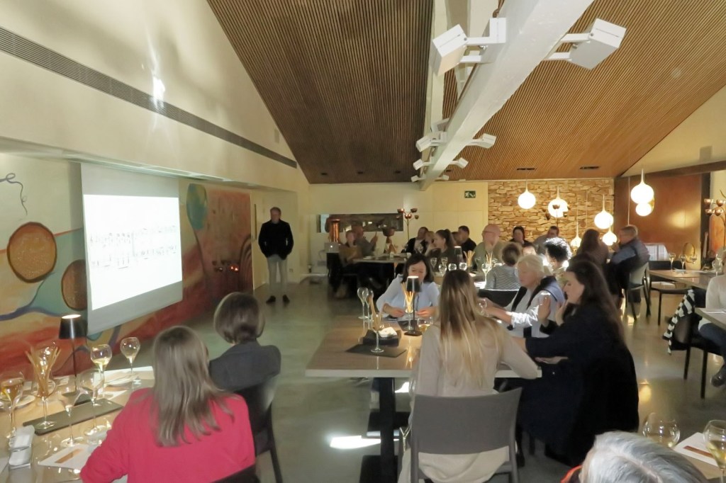 En una sala del celler, amb un bonic entorn, bellament decorat, realitzem l’experiència, que va començar amb l’explicació del Músic i director de Cors, el Sr. Esteve Nabona, que a la seva trajectòria com a director, ha ofert concerts arreu dels Països Catalans, Castella, Euskadi, Portugal, França, Itàlia, Bèlgica, Holanda, Luxemburg, Alemanya, Àustria i la República Txeca