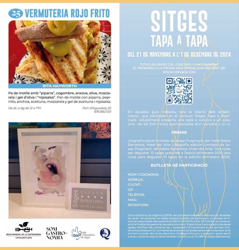 25 establecimientos ofrecen tapa más cañita o vino por 4 Euros. Oportunidad única para dejarse llevar por las calles de Sitges en compañía o en solitario.