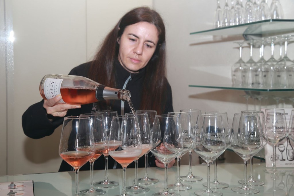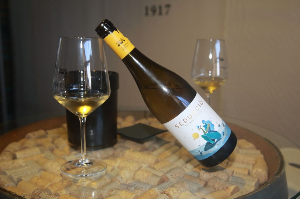 Sempre, amb copa a mà, seguim coneixent la Catedral del Vi de Nulles, i passem a una gran cúpula de grans arcades, preciosa, on ens esperava un escumós, aquesta vegada és l’Adernats Ancestral Moscatell. Moscatell 100%, escumós amb bones sensacions, Ressò, net i brillant amb reflexos daurats. Vam poder gaudir d’aquest edifici esplendorós, assaborint el boníssim ancestral