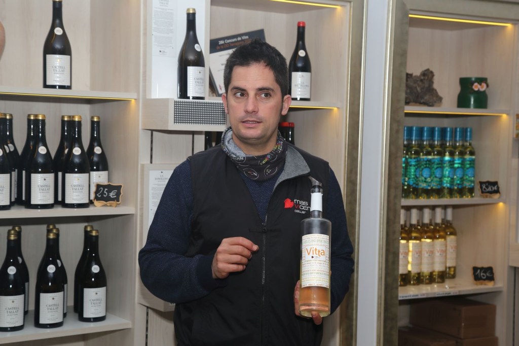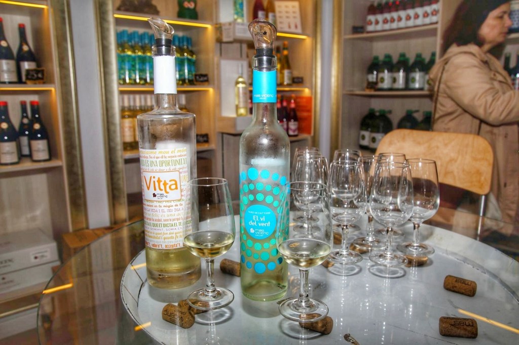 I així, vam arribar al final de la visita, a la botiga, on vam començar i per aabar amb bon sabor de boca, vam fer un divertit i boníssim tast de dos vins dolços, dels vins dolços tradicionals a la innovació i frescor de nous vins, amb un toc dolç molt singular, Aquest és el maridatge de vins dolços que ha preparat una guia de maridatge de vins dolços feta pel seu sommelier, presentant 2 dels seus vins més innovadors: el “Vi del Vent” va venir naturalment dolç i “Vitta”, nova singularitat de Mas Vicenç.