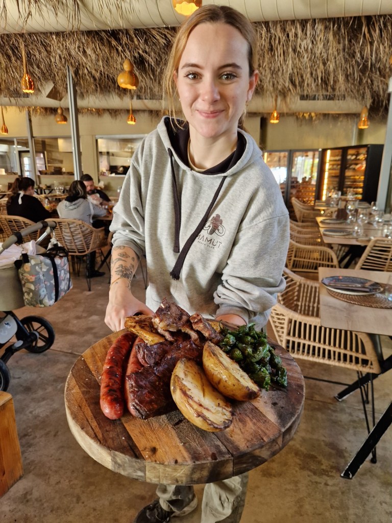 Los fines de semana y festivos; Mamut Beach Club eleva la experiencia con una versión más completa del menú, disponible por 40 euros por persona. En esta opción, los calçots ilimitados son los protagonistas, servidos con salsa romesco casera, pan con alioli y tomate, y alcachofas frescas del Parc Agrari del Baix Llobregat.