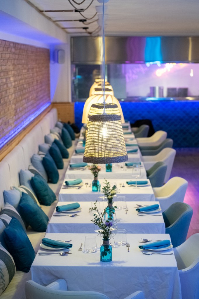 El local de Maysi Barcelona es un reflejo de la esencia de Formentera, diseñado para ser un oasis mediterráneo en medio de la ciudad. Cada rincón del espacio hasido creado para transmitir calma, frescura y esa sensación única de desconexión que caracteriza a la isla. Los colores suaves y naturales, como los tonos arena yblanco, se combinan con detalles en madera, vegetación y texturas orgánicas,transportando a los visitantes al paisaje isleño.La atmósfera se complementa con una iluminación cálida combinando un estilorústico y moderno, que refuerza la intimidad y el confort sin perder el caráctercosmopolita de Barcelona.