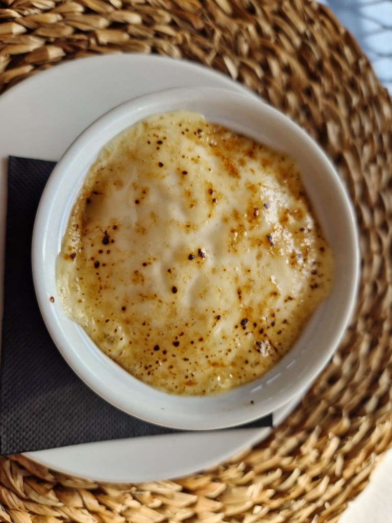 Per finalitzar aquest esplèndid menjar, unes postres delicioses, escuma de crema catalana amb gelat de mandarina. El colofó d’or perfecte, juntament amb un cafetet