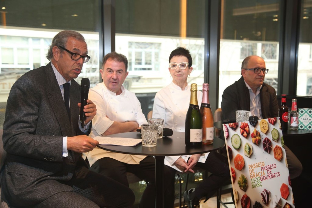 Al costat del Director General d’Empreses Agroalimentàries, Qualitat i Gastronomia del Govern de la Generalitat, Joan Gòdia, i els estrellats xefs Carme Ruscalleda i Martín Berasategui, Luis Sans, president de la Associació del Passeig de Gràcia, ha presentat avui les novetats d’aquest consolidat certamen a la Cocteleria Luma de l’hotel ME Barcelona.