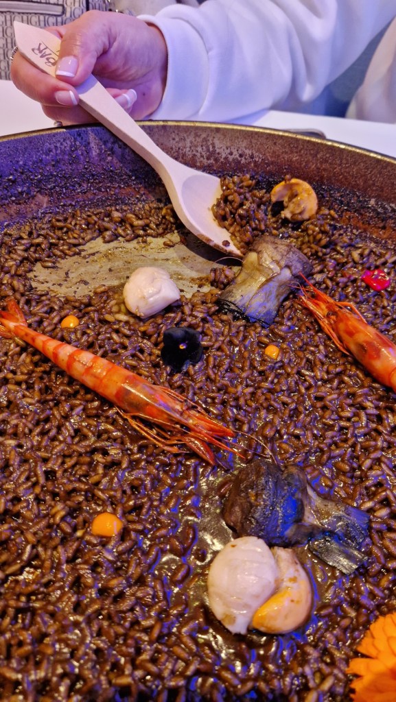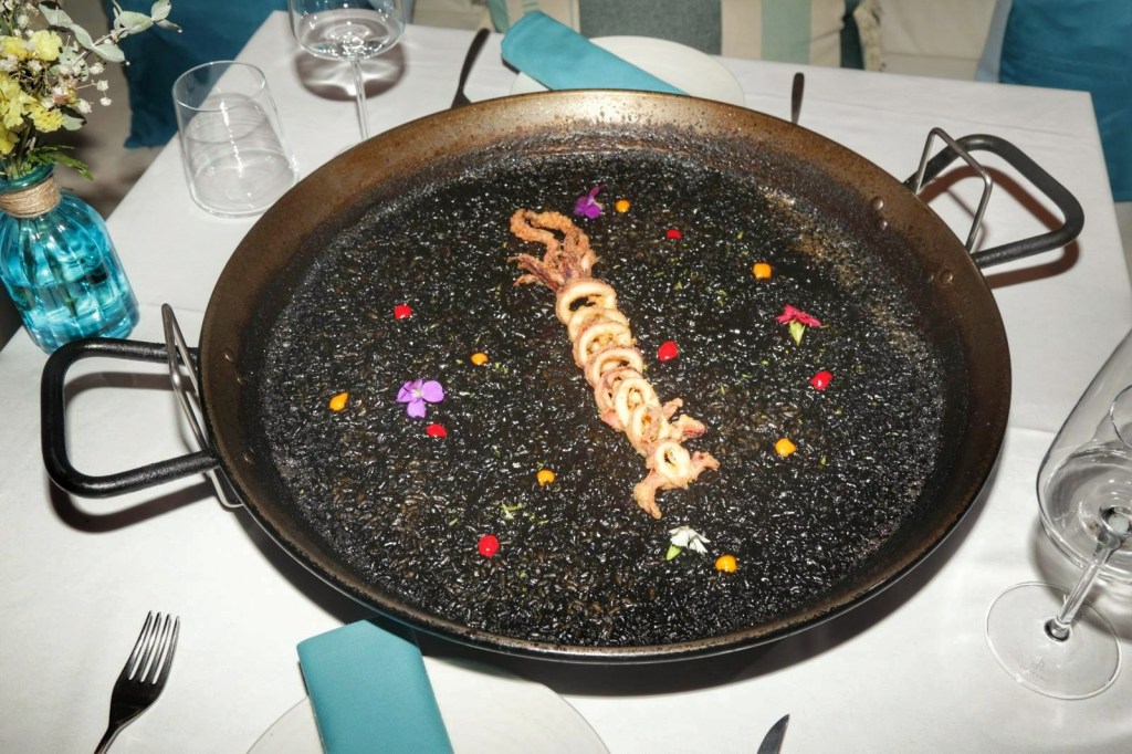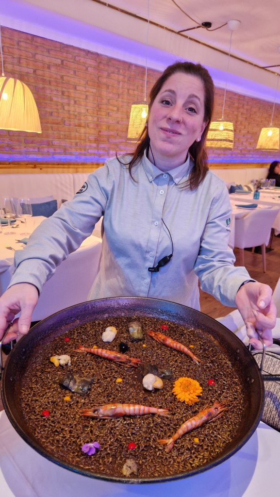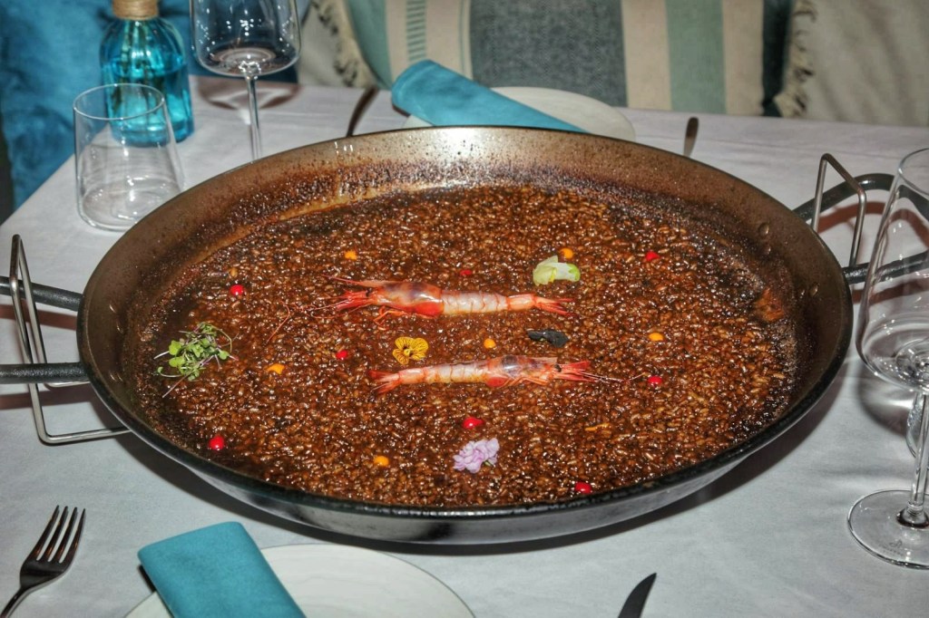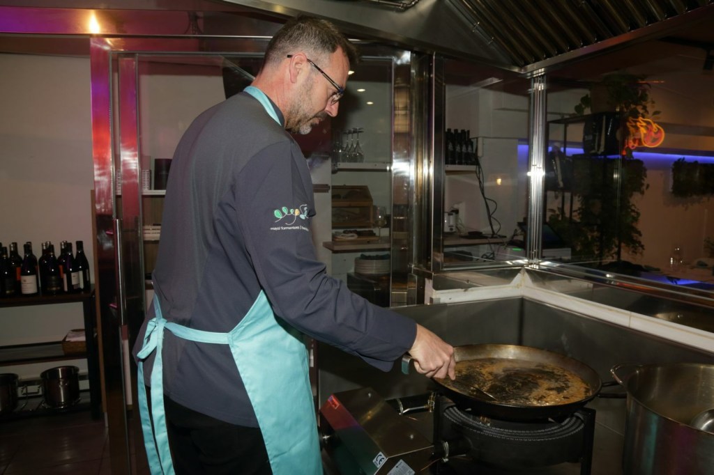 Durant la nostra visita van realitzar davant nostre un parell d’exquisides paelles, una d’arròs negre amb calamars fregits i una paella de gamba vermella, la realització de les mateixes per part de Pepe i el seu ajudant va ser tot un espectacle
