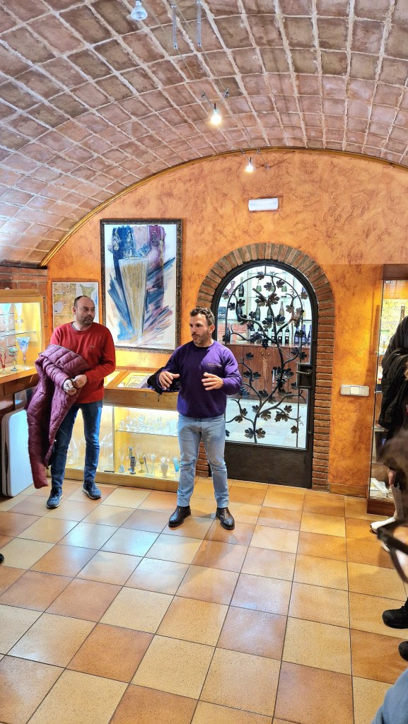 S’hi troben exposades 5000 peces del món de la vinya, del vi i del cava des del segle IV a.C. fins al segle XX. El museu compta amb 3 sales temàtiques per exposar les seves peces, la Sala del Vidre, la Sala de Viticultura, la Sala d’Enologia, a més d’una biblioteca excel·lent. Nosaltres vam començar per la sala del vidre. Aquí hi ha exposada una magnífica col·lecció de copes antigues, acompanyades de porrons i porrones, garrafes de principis de segle i un gran assortiment de vidre típic català. que el Ramon ens comenta que són des del 1830 fins a modernes de disseny únic i exclusiu.