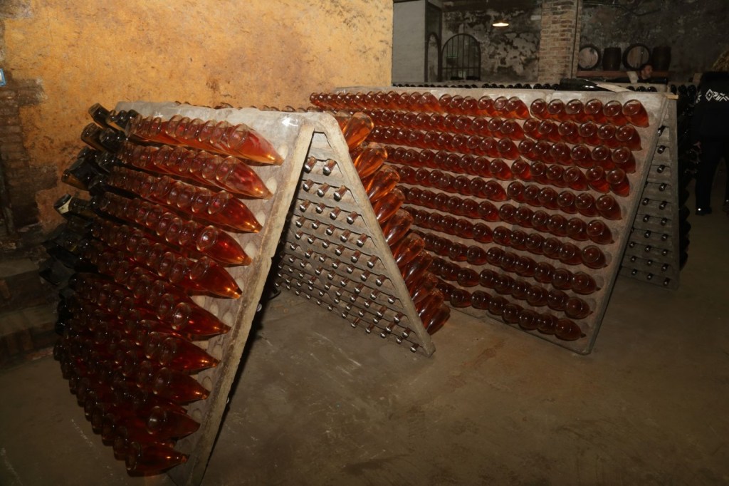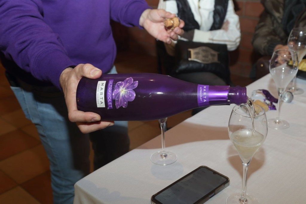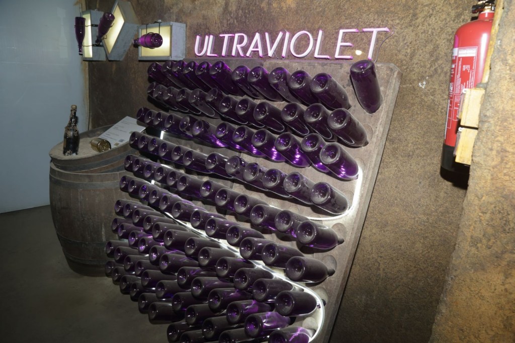 D’aquí ja baixem a visitar el celler on arribem fins a una profunditat de 15mts, amb explicacions clares i molt completes sobre el procés d’elaboració del vi i cava fins a arribar a una part del celler, on posseeix un racó especial el seu cava “MARTA ULTRAVIOLET RESERVA ECOLÒGIC BRUT” El cava MÉS innovador dins de la primera. ampolla de cava VIOLET® del món i etiqueta fosforescent amb llum UV.