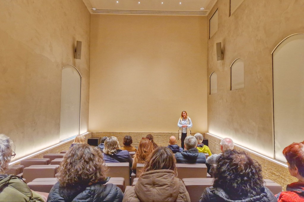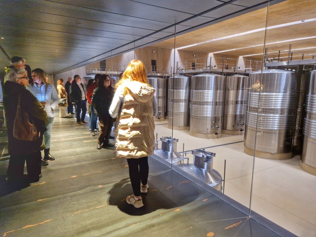 Comencem la visita, que està molt ben estructurada i preparada per transmetre “el somni” que impulsa aquest projecte. La guia que ens va acompanyar, la Sonia, superprofessional i amb uns excel·lents coneixements sobre els diferents processos d’elaboració del vi i sobre el projecte arquitectònic que té un pes important a la visita.