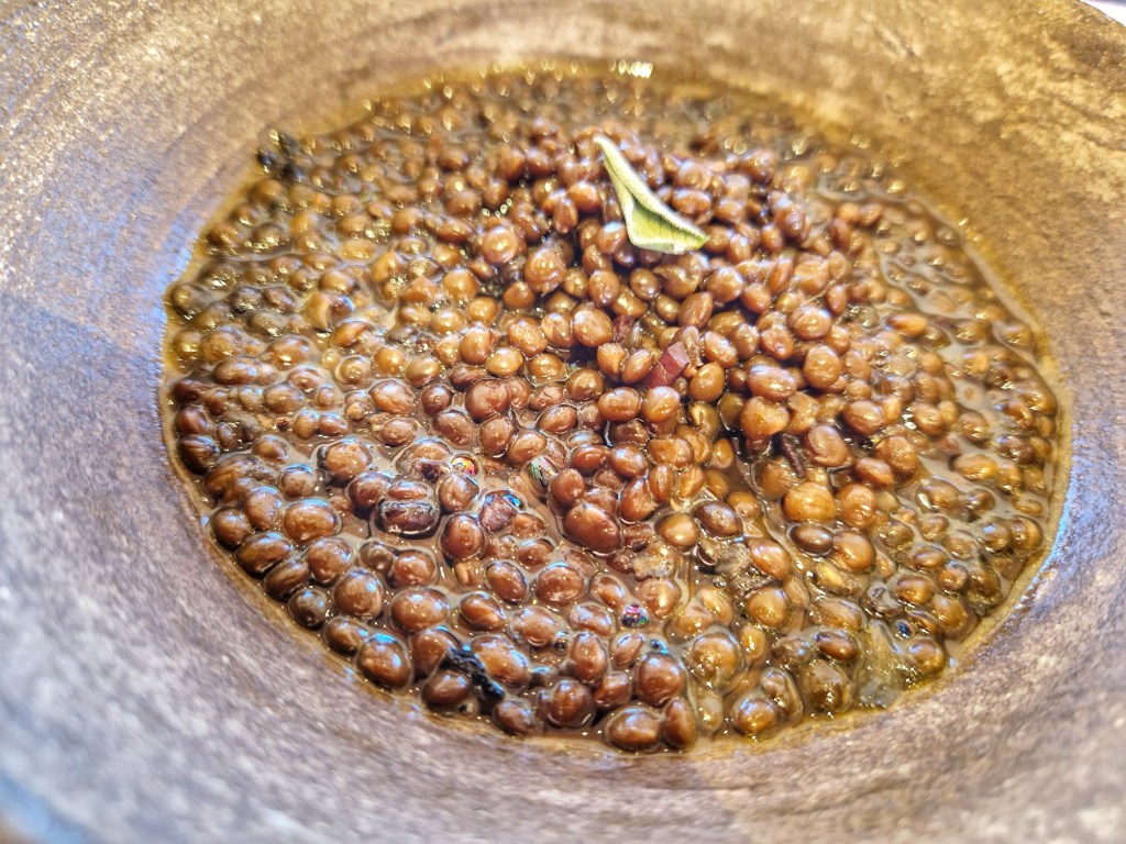LLEGUMS DEL DIA. Aquell dia eren llenties, però servides amb gràcia en un bol de fang gris, tipus copa, i les llenties no sabem com estan cuinades, però Expectaculars