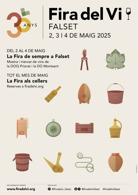 La Fira del Vi de Falset celebra enguany el seu 30 aniversari del 2 al 4 de maig. Una seixantena de cellers seran presents en aquesta edició, dels quals 23 seran cellers de la Denominació d’Origen Montsant, amb una àmplia representació de models i zones que conformen la DO: Acústic Celler, Bell Cros, Celler Anguera Domènech, Celler Cairats, Celler Cedó Anguera, Celler Comunica, Celler Cooperatiu El Molar, Celler de Capçanes, Celler de l’Era, Celler Mas de les Vinyes, Celler Masroig, Celler Vendrell Rived, Cellers Pascona, Cellers Sant Rafel, Cellers Unió, Coca i Fitó, Cooperativa Falset Marçà, Estones Vins, Josep Grau Viticultor, La Placeta, Orto Vins, Terravinyada i Venus La Universal.