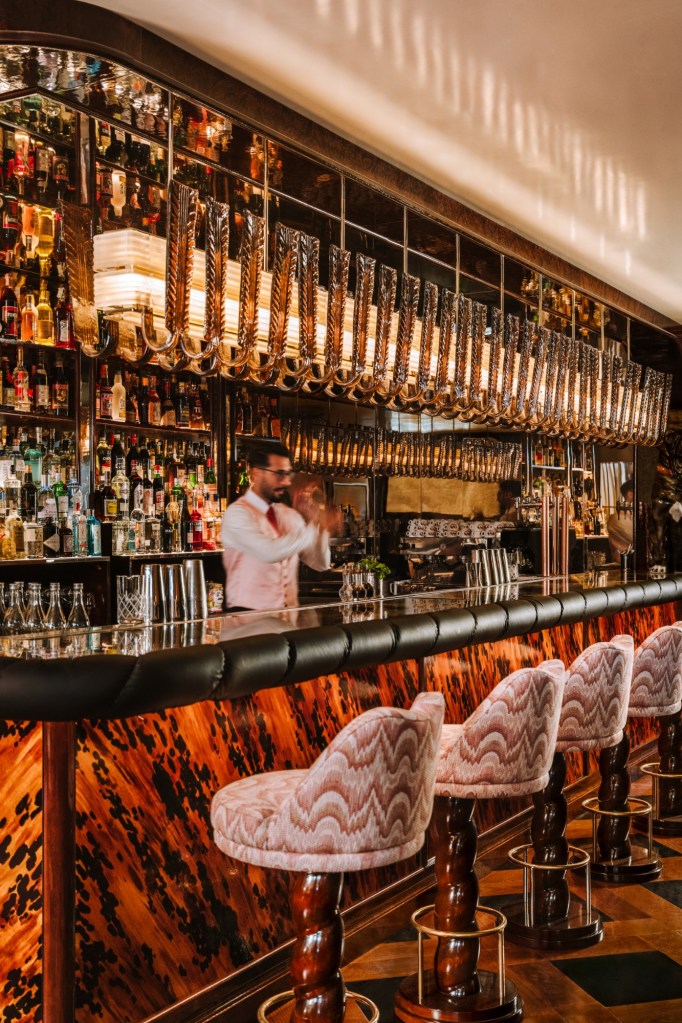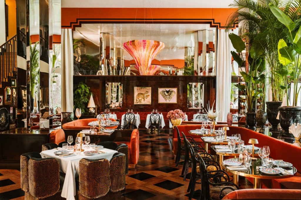 En abril de 2025 abrió puertas Gloria Osteria, el primer restaurante del Grupo francés Big Mamma en Barcelona, que desde 2015 ha inaugurado 28 trattorias por todo el mundo. Atentos: divididos en dos plantas, y con una capacidad para 250 comensales, ocupa más de 1.000 m² repartidos en dos niveles, con columnas de espejo en forma de estrella de más de cuatro metros, alfombras a medida con estampado moiré, envoltorios de naranjas vintage y una lámpara de cristal de Murano de 400 kilos que preside la barra como si estuviéramos en un remake glam de La Dolce Vita a cargo de Baz Lurhmann (seguro que pasará). Studio Kiki ha mezclado sin miedo el exceso y la nostalgia. Todo muy conceptual. Porque claro, hace falta concepto para llenar uno de los restaurantes más grandes de Barcelona.