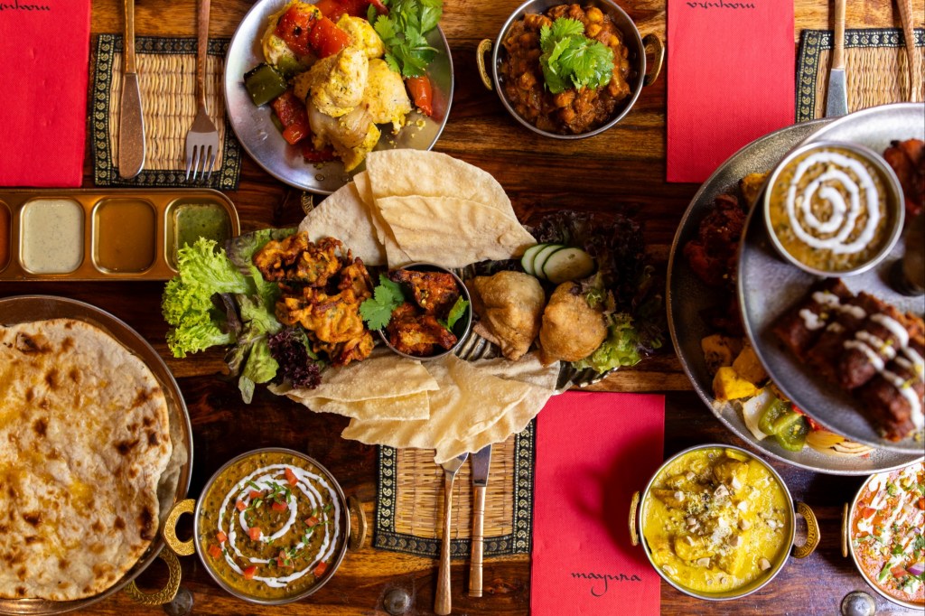 En Mayura, los recuerdos de la infancia de sus propietarios inspiran cada creación. “Nos gusta combinar tradición y creatividad, manteniendo siempre el alma de la cocina india. Algunos currys, por ejemplo, siguen bases heredadas del norte de la India, y los hemos perfeccionado con el tiempo. Cada plato lleva un poco de historia y de autor”, subraya Rajnish Kapoor.