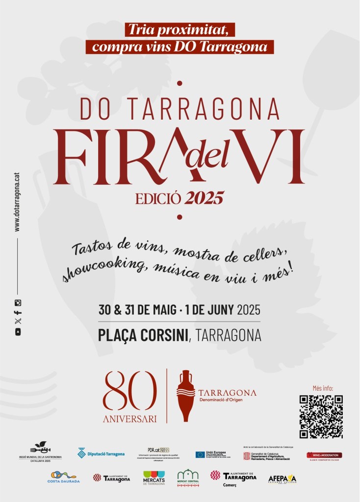La Denominació d’Origen Tarragona celebra els dies 30 i 31 de maig i 01 de juny, una nova edició de la seva Fira del Vi, a la plaça Corsini de Tarragona. La fira acollirà els vins dels 14 cellers de la DO que participen enguany de la mostra: Celler Magrinyà Calaf, Celler Mas Bella, Celler Mas del Botó Celler Pallarades, Cellers Blanch, Cellers Unió, Casa Vermouth Padró, De Muller, Mas d’en Baiget, Mas Amfres, Molí de Rué, Vinícola i Secció de Crèdit Sant Isidre de Nulles, Vins i Caves Vives Ambròs i Vins Suñer.