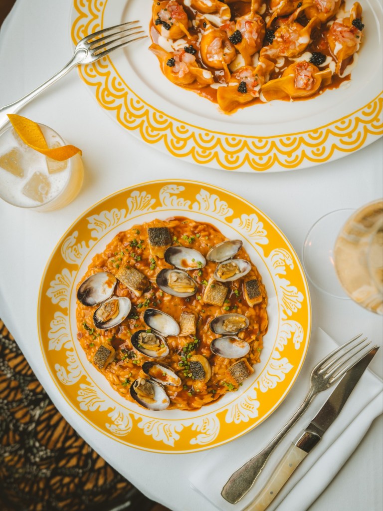En un local de más de 1000m² decorado por Studio Kiki, el estudio creativo de Big Mamma, cada rincón invita a vivir la “dolce vita” con glamour, desde los grandes candelabros de Murano hasta los platos elaborados con