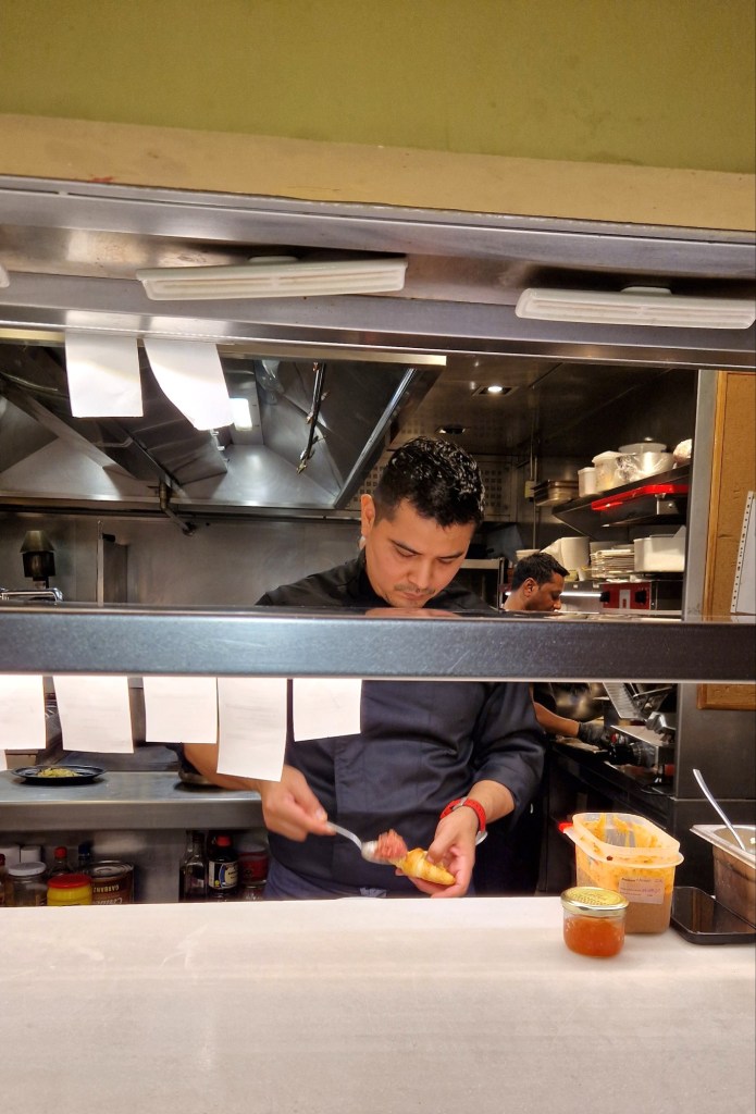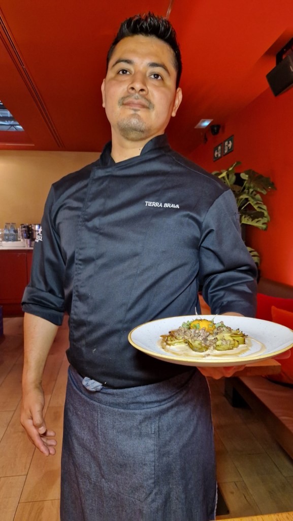 El Chef de Tierra Brava Luis Arteaga, que nos fue sorprendiendo con platos que nos iba sirviendo, elegidos por el mismo y a cuál el mejor. Acertó con todos, no hubo ninguno que no probáramos y todos excelentes no sabríamos deciros cual probar, por lo que dejamos que vayáis y lo descubráis por vosotros mismos, os aseguramos que no os decepcionará, para nada, repetiréis y recomendareis a familia y amigos que vayan a probar esos ricos y excelentes platos que os prepararán en Tierra Brava.