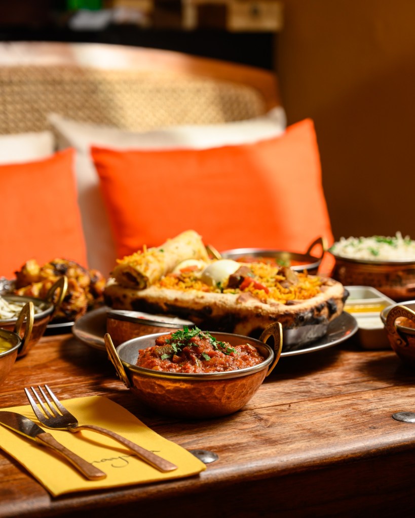 En su carta destacan clásicos como el pollo tikka masala, el pollo Makhani, el butter chicken o el biryani de cordero, elaborados con recetas tradicionales y técnicas como el horno tandoor. También ofrecen una amplia selección de platos vegetarianos, veganos y sin gluten, con ingredientes frescos, de temporada y de proximidad, adaptando cada propuesta a las necesidades del comensal.