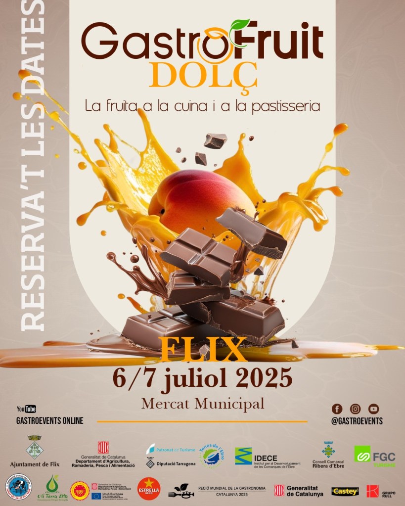 Emmarcat en el projecte “12 mesos, 12 paisatges” de Catalunya Regió Mundial de la Gastronomia, GastroFruitDolç 2025 convertirà Flix en la capital de la pastisseria amb un cartell estel·lar que reinvidicarà el producte de local i el talent dolç del país.