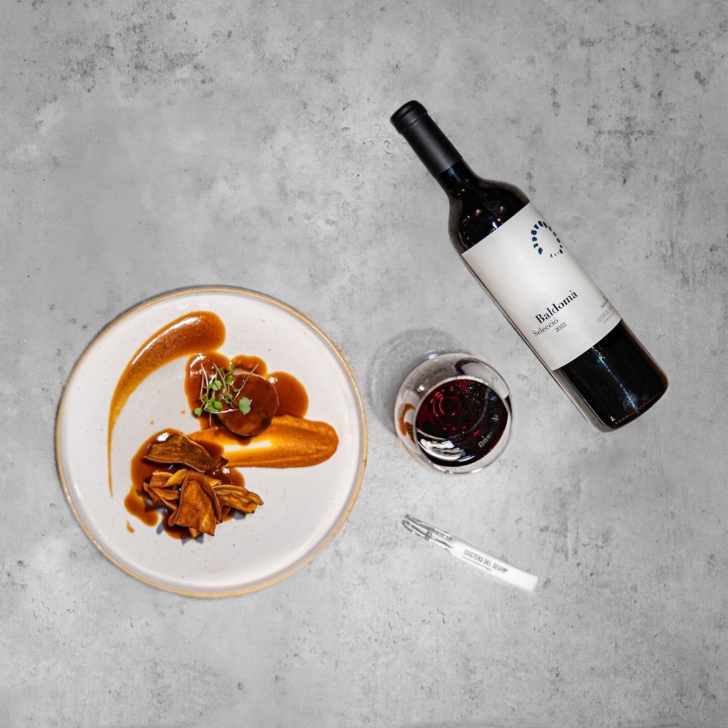 5. Nacho Bustamente i Adrián Zahino de El Celler de Montsonís presenten La nostra versió de pollastre a la catalana que marida amb el vi negre Baldomà Selecció 2022 de Vall de Baldomar presentat per la cellerera Marta Porta.
