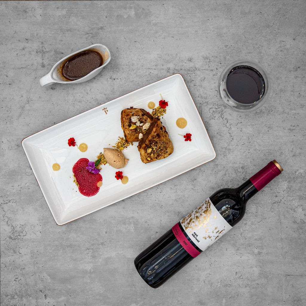 10. Mario Rojo de El Parador de Lleida cuina una Napolitana de senglar amb gelat d’avellana i vainilla que casa amb el vi negre Saó Abrivat 2021 de Mas Blanch i Jové presentat per la cellerera Sara Jové.