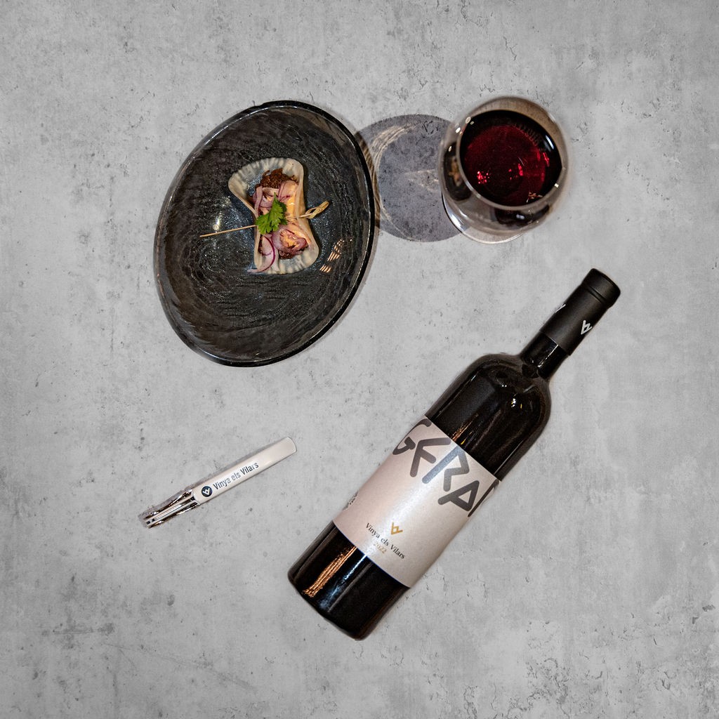 11. Robert Porta de El Claustre de Les Avellanes ofereix Peus de porc farcits de botifarra negra que acompanya el vi negre K-Tharsis 2022 de Matallonga presentat l’enòloga Alba Penella