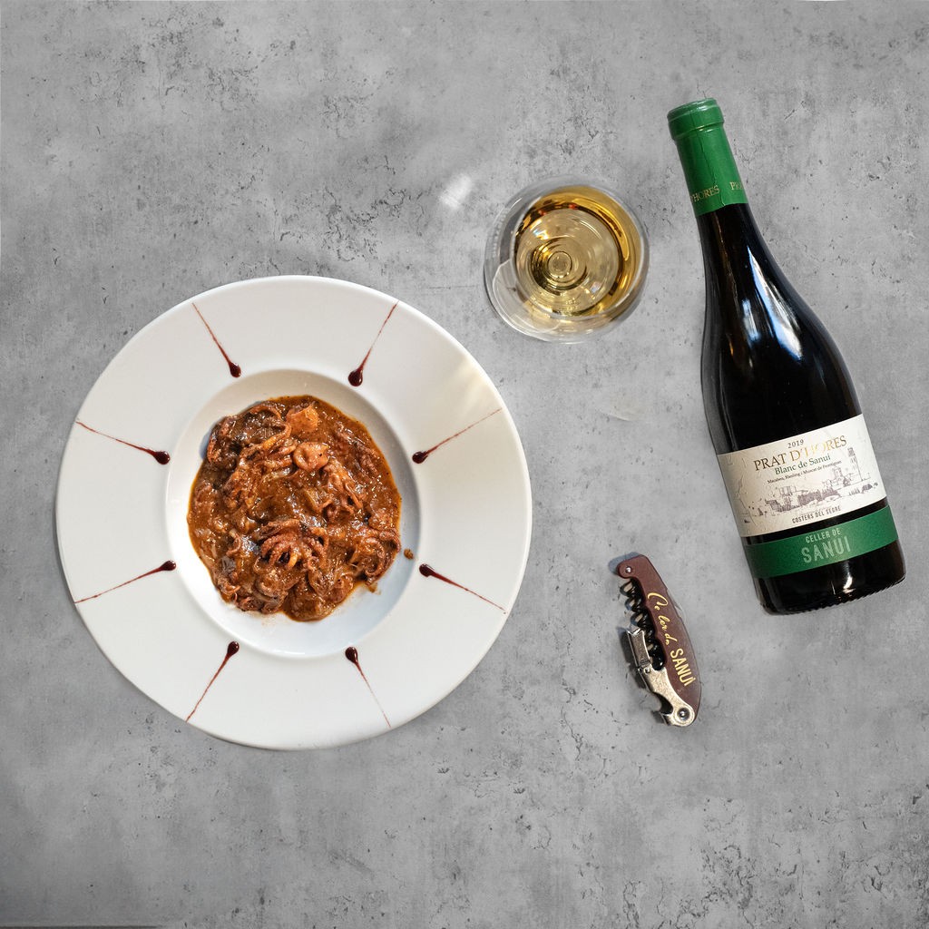12. Nougaoui El Hassane de la Torretta de Lleida elabora Popets a la siciliana que s’ofereix amb el vi blanc Prat d’Hores 2019 del Celler de Sanui presentat per l’enòleg Pere Escudé.