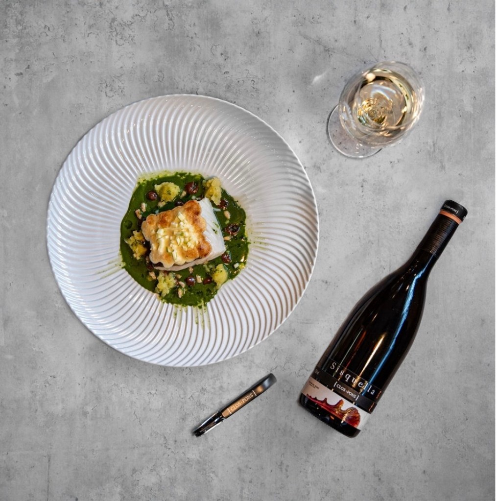 1. Jordi Pallàs de l’Aimia de Lleida presenta un Bacallà a la lleidatana que marida amb el vi blanc Sisquella 2019 de Clos Pons presentat pel sommelier Daniel Almirall.