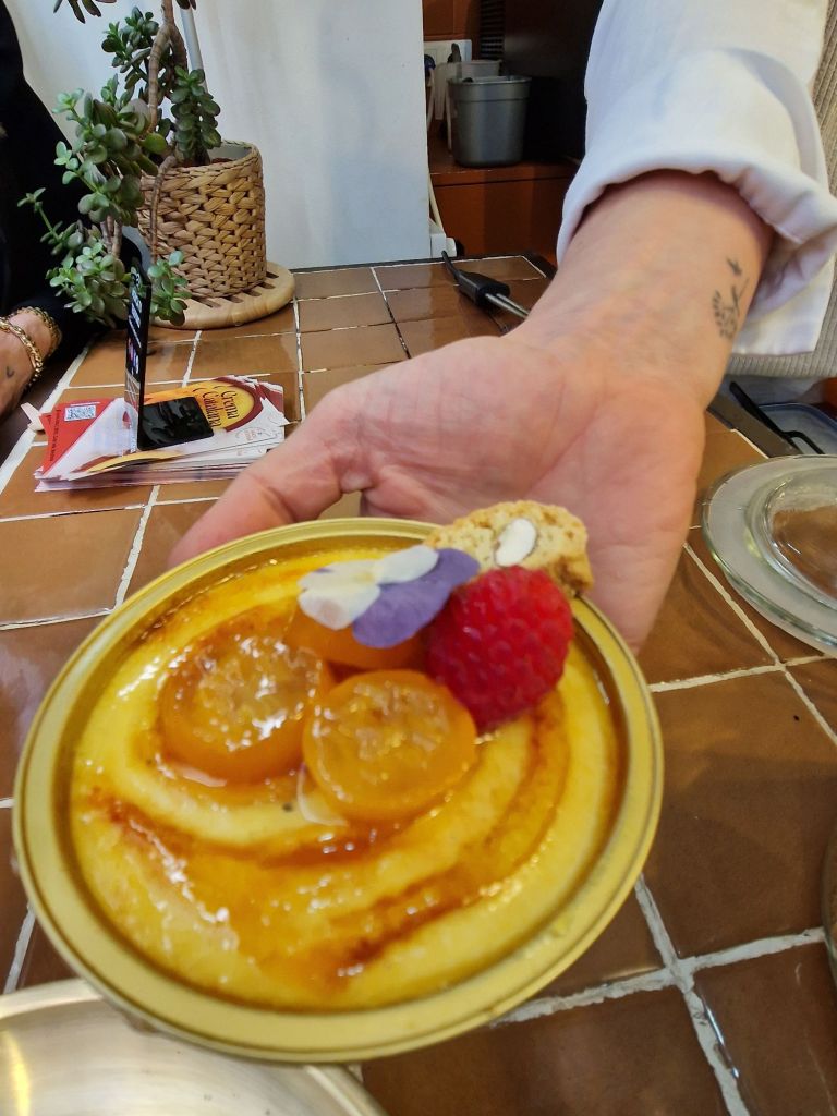 Un idil·li que comparteix amb la seva parella (sentimental i laboral), en Mario. Tots dos, després de molts anys treballant en el món de l’hostaleria a Barcelona (formen part de l’equip del Grupo Quibuch, “pare” del restaurant Arcano), sentien la necessitat de crear alguna cosa pròpia que pogués transmetre aquesta passió, i que pogués també explicar a la resta -especialment al que venen de fora-, la cultura culinària catalana, però d’una manera molt senzilla, molt directa i seductora. I què millor que amb un dolç com la crema catalana!
