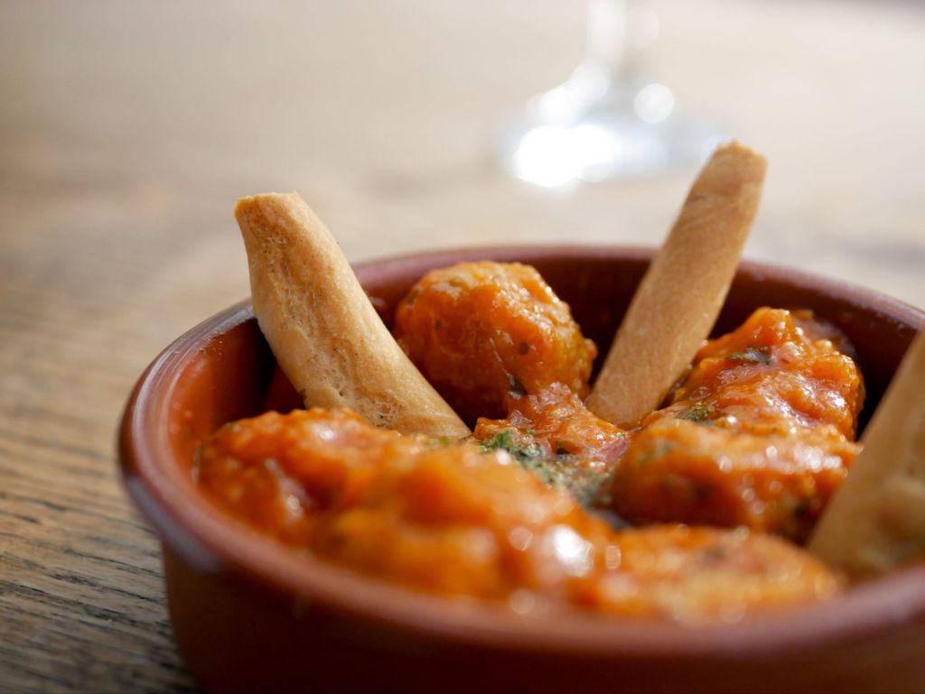 Mandonguilles de mar i muntanya de vedella i sípia amb patates cruixents; i del Bar Marsella (C/