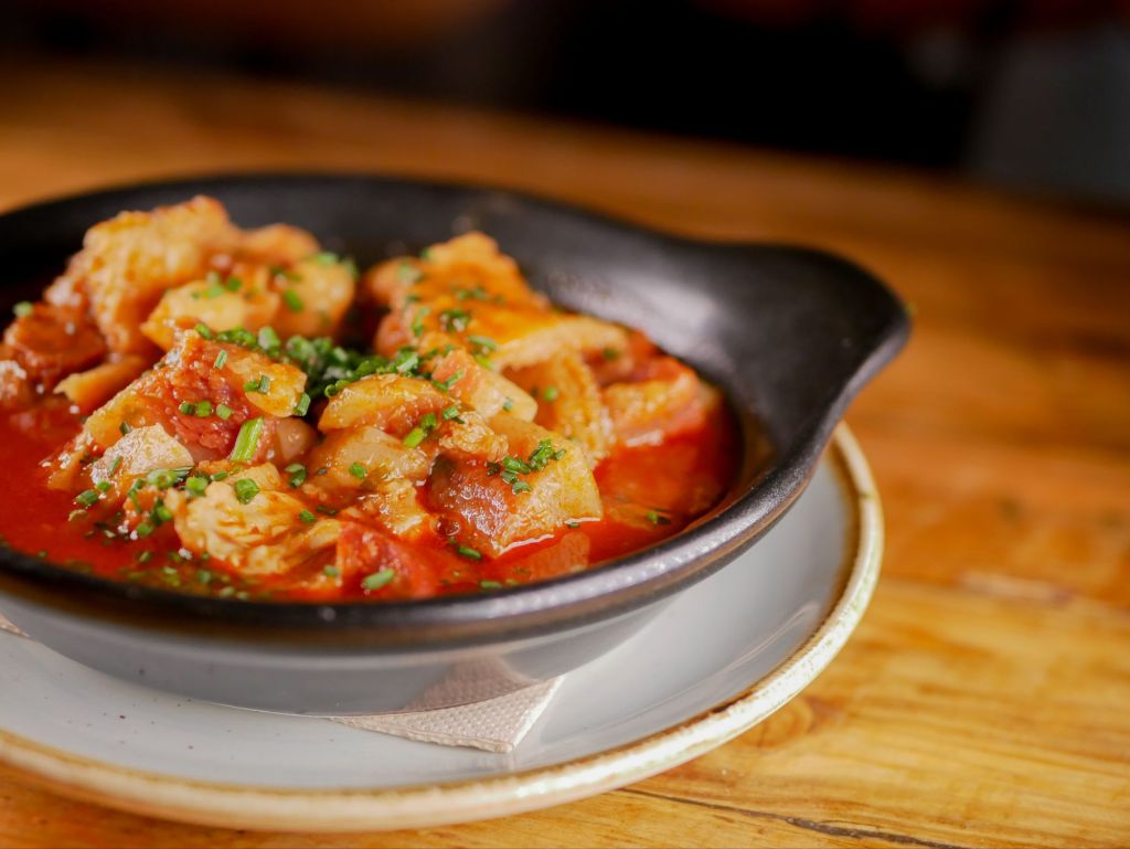 Cuina d’aquí amb accents llunyans és el que proposarà Fat Cat (Pl. de Salvador Seguí, 13), amb la seva tapa de Bao de galta esmollada, demi-glace de carn, ceba vermella adobada, coriandre i salsa casolana picant gouchujang. I als que els agradi aquesta tapa, segur que els agradarà la del restaurant Cervesa Sant Jordi – Tabarlot (C/ Sant Pau, 4): un deliciós Mos de drac de Pulled Pork amb adobats.