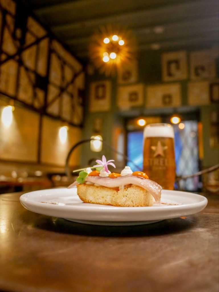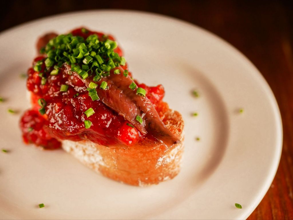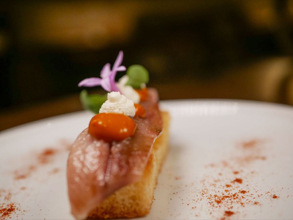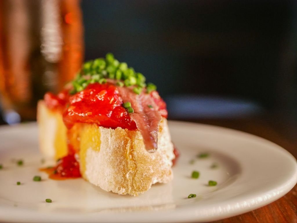 tastar una Tosta de sardina fumada amb melmelada de tomàquet, alfàbrega i crema de