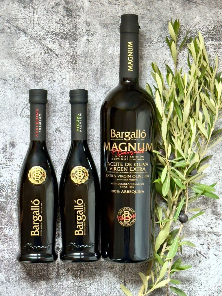 Olis Bargalló comercialitza olis d’oliva extra verge en diferents formats, així com altres productes relacionats, des de vinagres i agredolços, a olis aromàtics, olis vegetals, i olis especials per a hostaleria.