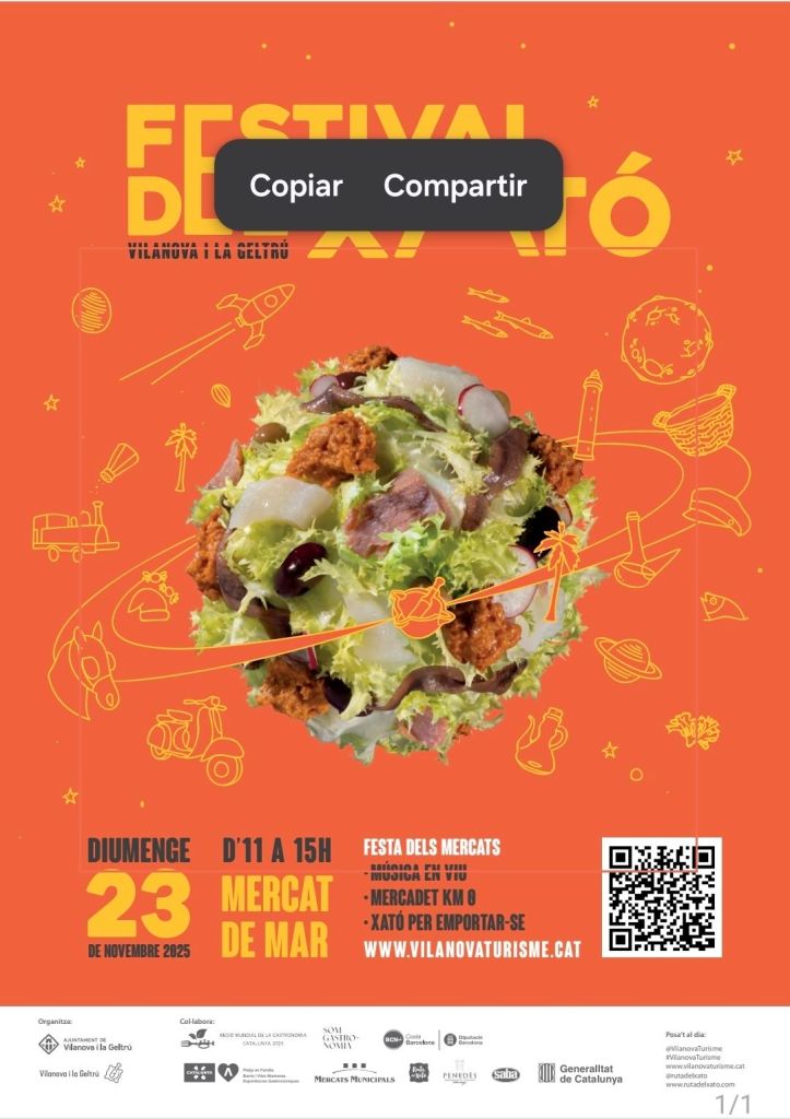 Aquest festival obre oficialment la nova temporada de la Ruta del Xató, un projecte que uneix nou municipis del Garraf i del Penedès. Vilanova i la Geltrú és la primera parada del recorregut d’on arrenca la temporada, impulsant una iniciativa que marida gastronomia i turisme per promocionar el xató durant els mesos d’hivern.