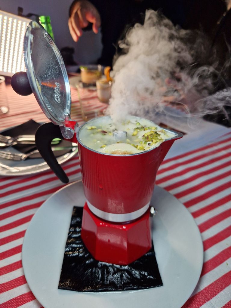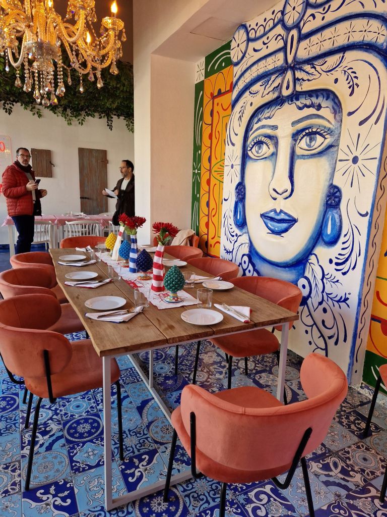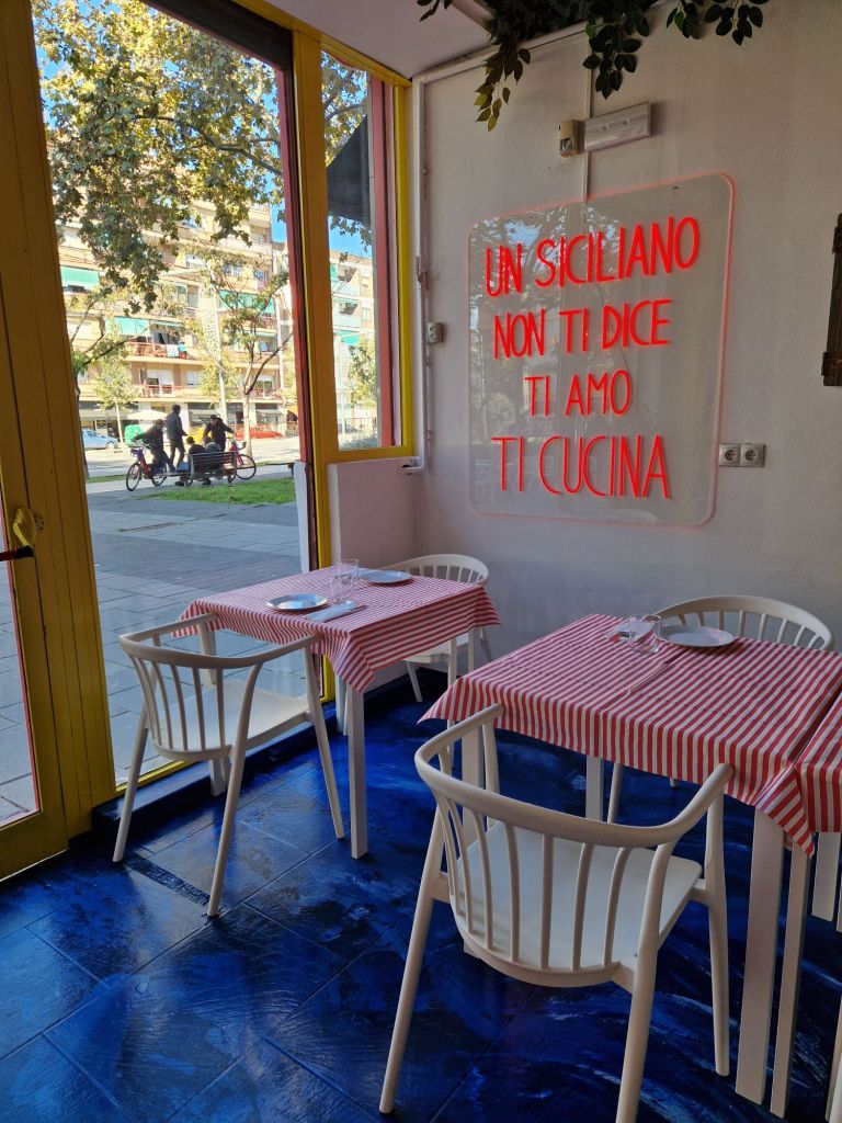 En este flamante restaurante —inaugurado el 13 de noviembre la gastronomía de Sicilia habla en voz alta, con esa mezcla de orgullo, exageración y proximidad que define a la isla. Es una cocina generosa, rotunda y con carácter, y un local que nos transporta a la isla a través de un lenguaje visual disruptivo y lleno de contrastes, con algunas obras únicas, creadas por artistas emergentes.