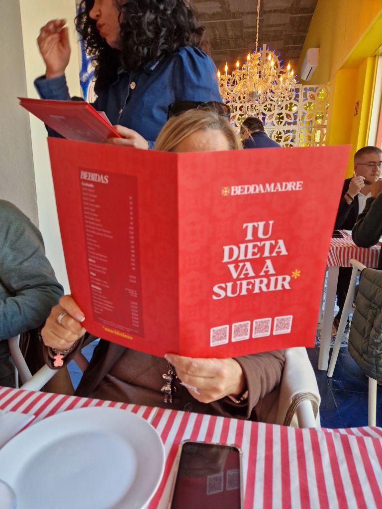 El comensal debe saber que “su dieta va a sufrir” (tal y como irónicamente se presenta la carta), porque en Bedda Madre, “se empieza poco a poco -tal vez-” (entrantes), luego “la cosa se pone seria” (primeros), para catar la “reina de la mesa” (pizzas) y comprobar que “el paraíso existe” (postres).