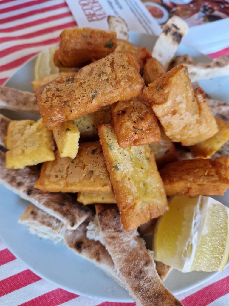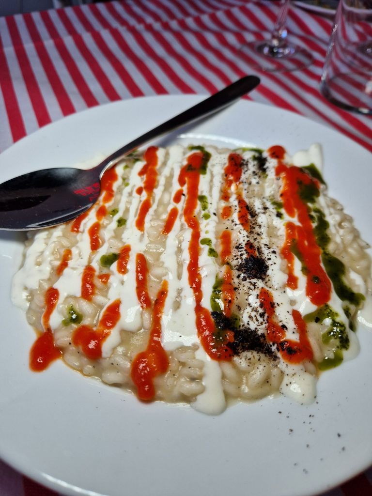 Así, hay entrantes absolutamente de locura, como el favorito de Emmanuele, los “Mangia e Bevi” (una cebolleta envuelta en panceta), que ha rescatado de los mercados de Palermo y que conecta la tradición siciliana con el calçot catalán. Destacan también, los arancini rellenos a mano (100% street food siciliano); o las bravas sicilianas, las “cazzilli palermitani”, una enorme patata frita con salsa de ajo y pesto de pistacho.