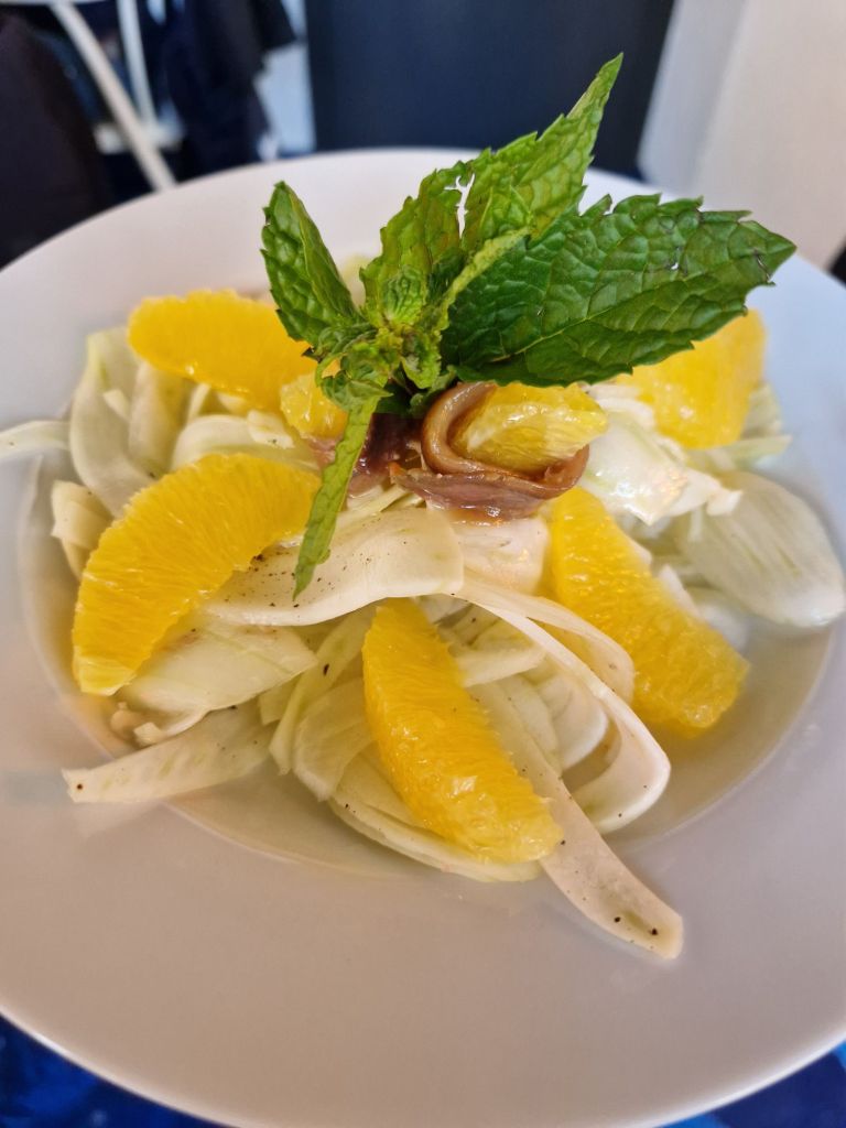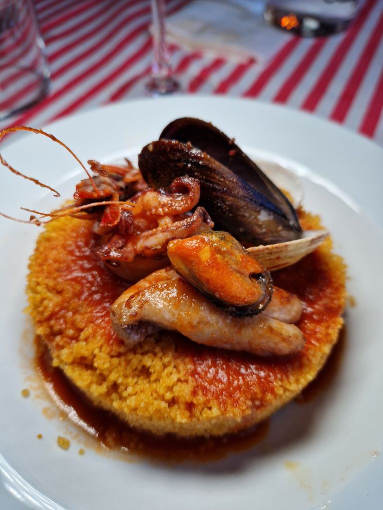 La “cosa se pone seria” con el plato estrella de la coquinaria siciliana, reflejo fidedigno de su mezcolanza de culturas: el cuscús de pescado real. También se pueden saborear platos tan caseros como los “anelletti” al horno rellenos de ragú de carne, mozzarella, guisantes y queso caciocavallo; o los canelones con crema de brócoli, queso caciocavallo y miga de pan salteada; o los spaguetti al fuego, con ese picante que le da tanto carácter (para llorar de felicidad).
